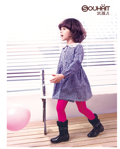 “水孩兒”在秋裝上運(yùn)用較多的是高品質(zhì)仿毛面料。該面料采用滌綸、粘膠等原材料混紡倍捻(并線)而成,遵循傳統(tǒng)色織工藝,采用緯向提花的特殊織造方法,使面料具有紗羅(高細(xì)棉紗織的薄布)般的柔軟感覺,面料織造時加入的彩絲,可以增強(qiáng)抗拒太陽光紫外線輻射的理想效果,后整理時采用抓毛、預(yù)縮高溫定型(190℃-200℃),孩子們在穿著的時候不容易變型,并且將PH值控制在5.5-7之間,該范圍值對人體皮膚抵抗病菌的入侵具有最佳效果,更用心的保護(hù)孩子們的健康,使該面料獨(dú)具柔軟性,同時又具備毛呢的風(fēng)格。