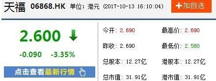 ◆ 2011年9月26日,天福茗茶于香港上市,發(fā)行價6元港幣,股票代碼006868.HK。