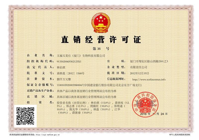 順便提一句:商務(wù)部網(wǎng)站上天福天美仕被允許直銷經(jīng)營的只有化妝品,區(qū)域也只局限在廈門。