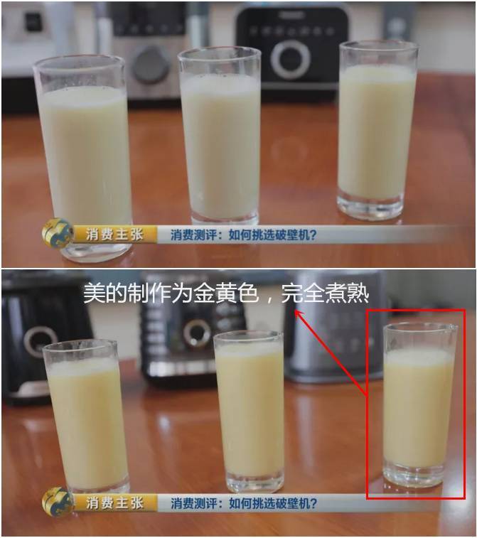 當然,并不是所有的外國貨都沒有加熱功能。為了公平起見,《消費主張》欄目加賽一輪——增加了一款售價高達8888元,設有“熱湯”功能的美國產品,并選擇更加難熟的黃豆打豆漿,測試中、外破壁機產品表現。