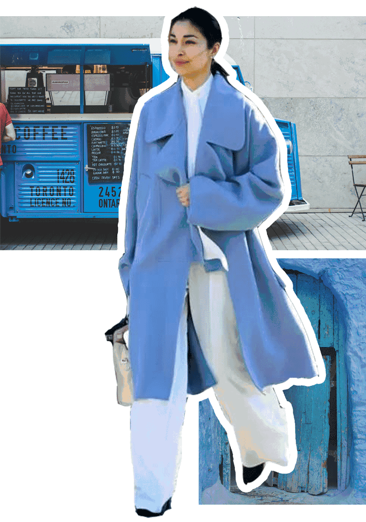 船塢藍(lán)相較于之前流行的霧霾藍(lán)來說,在視覺上顯得更加簡潔涼爽,是紐約秋冬色系里唯一真正的冷色,搭配白色還會有種置身圣托里尼島的感覺。
