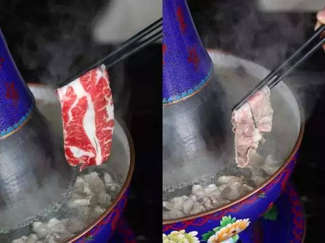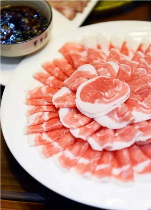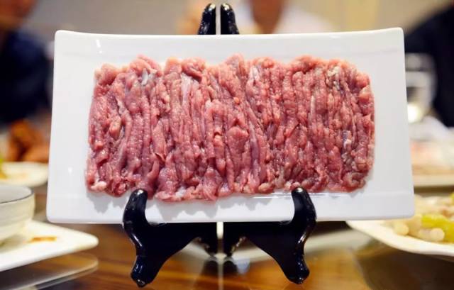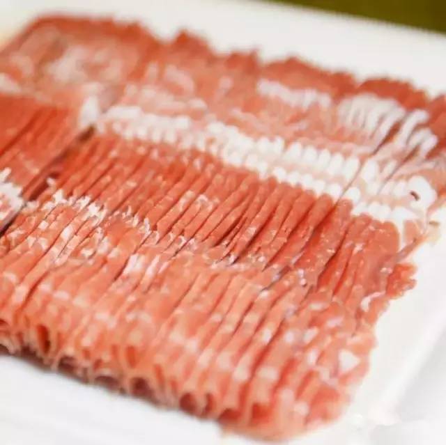 新鮮空運而至的精品羔羊肉,色澤均勻,三份肥七分瘦,厚薄適中。涮肉的時候先將偏肥的肉涮進去肥肥鍋,再涮瘦一些的肉,更能體現(xiàn)出肉的美味。坊間盛傳著“七上八下”的涮肉方式,肉片進鍋一涮就熟,入口是濃郁的肉味,加上清新的口感,讓人垂涎欲滴。~手工現(xiàn)切的薄薄的羊肉片PK凍起來用機器切的羊肉片,誰輸誰贏,就不用今啟菌說了吧!