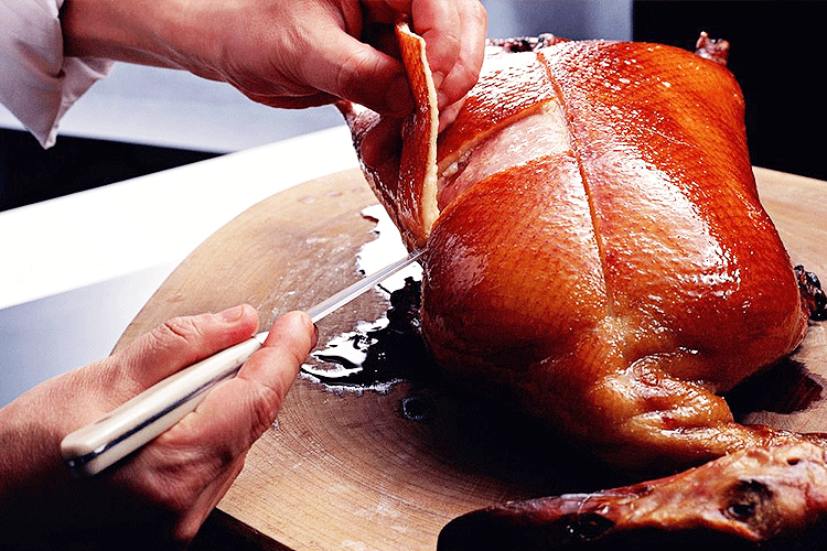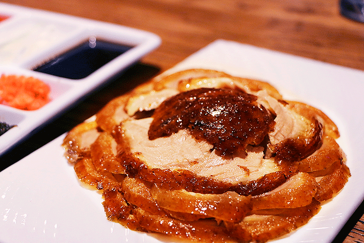 現(xiàn)在北京城里口味獨特的一種美食,制作工藝比現(xiàn)代烤鴨復(fù)雜的多,用料為優(yōu)質(zhì)肉食北京鴨。它以色澤紅艷,肉質(zhì)細(xì)嫩,味道醇厚,外焦里嫩,肥而不膩!