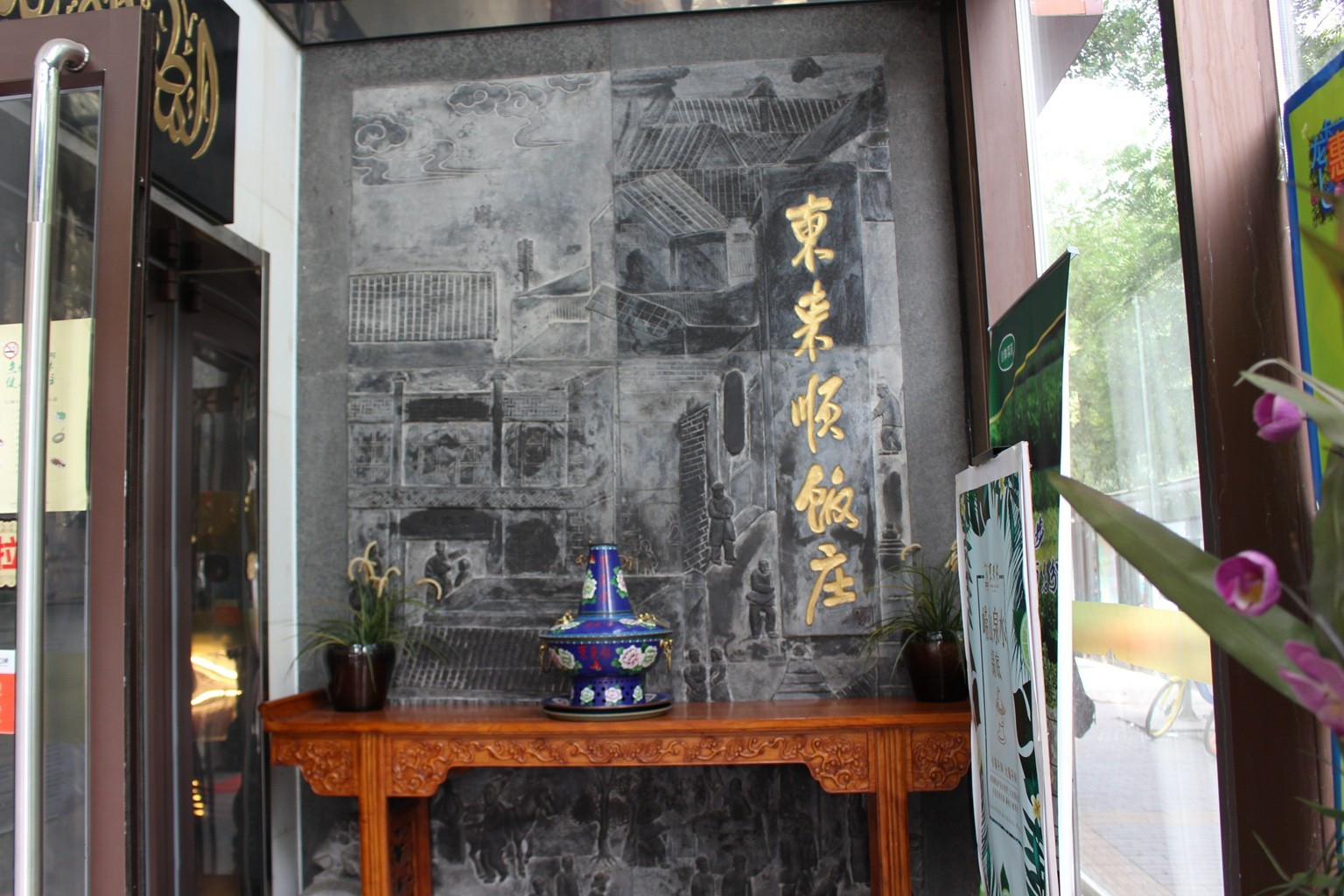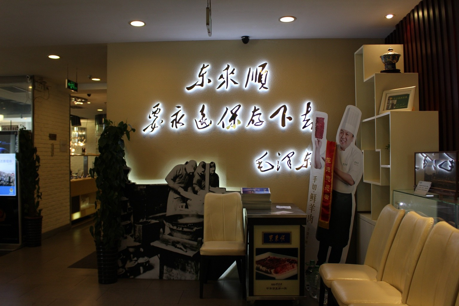 走進店里,映入眼簾的是一個景泰藍的火鍋擺在長木桌上,不需要華麗的裝飾,光是東來順飯莊這幾個字,就足以引來不少的食客~