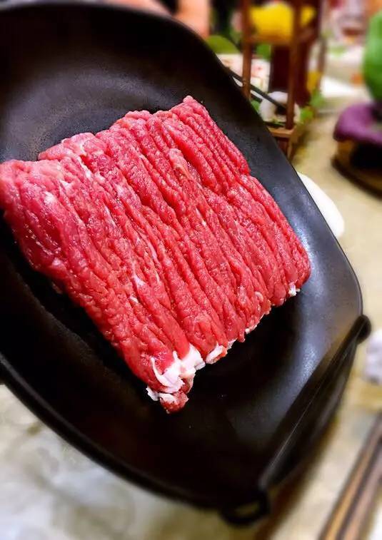據(jù)說會吃的人吃涮肉都會來一份手切羊肉,而東來順的手切羊肉就特別地道,機切肉由于種種原因閑置,切片后,肉中的纖維會被機械的切斷,而手切肉則會更多的保留肉中的纖維,涮熟入口更加有嚼勁,更能體會到羊肉的原汁原味