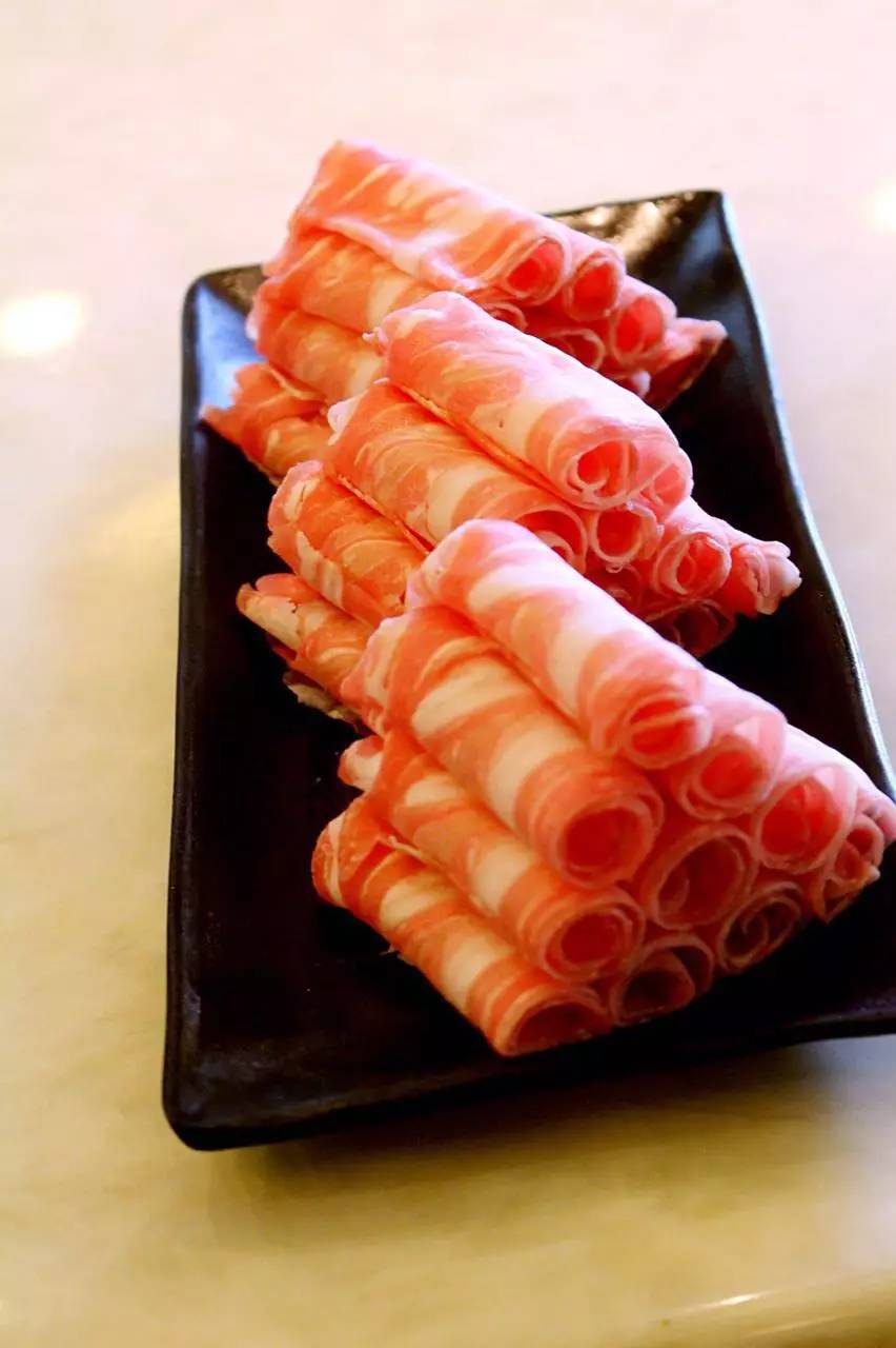 既然吃涮羊肉,那這羊肉卷是一定要嘗嘗的,這里的羔羊肉顏色粉嫩,肥瘦相間,紋理清晰,肉質(zhì)鮮嫩也沒有膻味,銅鍋沸水,過之無沫,鮮嫩到感覺蘸料都是多余的