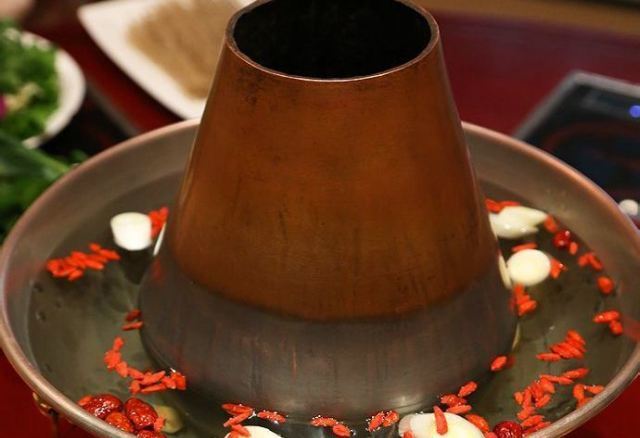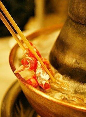 真正的老北京的涮鍋?zhàn)樱^對(duì)不會(huì)出現(xiàn)紅湯。端上來基本就是清水一泓,漂些個(gè)蔥段、姜片,有的還有些冬菇口蘑之類。當(dāng)然價(jià)錢高的,就不是白水而是高湯了。