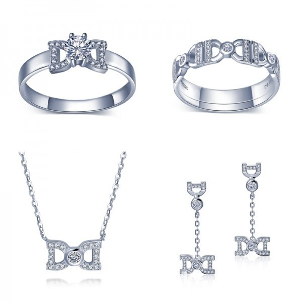 “I Do”系列將滿載真誠的字母“Do”充分延展設計,字母“D”對稱展現,中心以圓形主鉆連接,巧妙呈現“O”字,好似愛侶雙手緊密相執將一顆真心環抱,寓意牢不可破的誓言,亦靈動若蝴蝶結,增添活潑浪漫氣息。