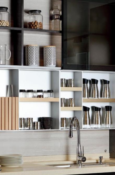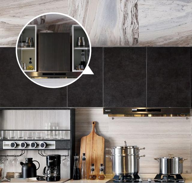 藏身于吊柜中的吸油煙機,關上柜門,與櫥柜融為一體。打開時,柜體兩側(cè)的畸形空間也規(guī)劃了收納區(qū),空間零浪費。打開開關,吸油煙機強勁的吸排力瞬間掃除油煙,即便是猛火爆炒產(chǎn)生的短時大量油煙也能快速清除。