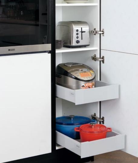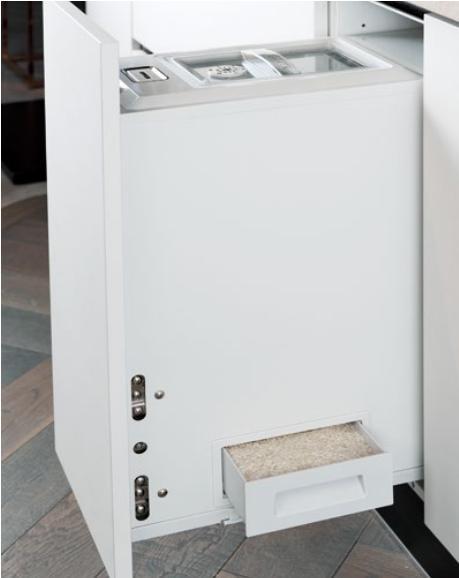 專業(yè)的米面箱讓令人頭疼的糧食收納也有時尚外表,箱體下部的便捷抽屜方便每次的小份取用。