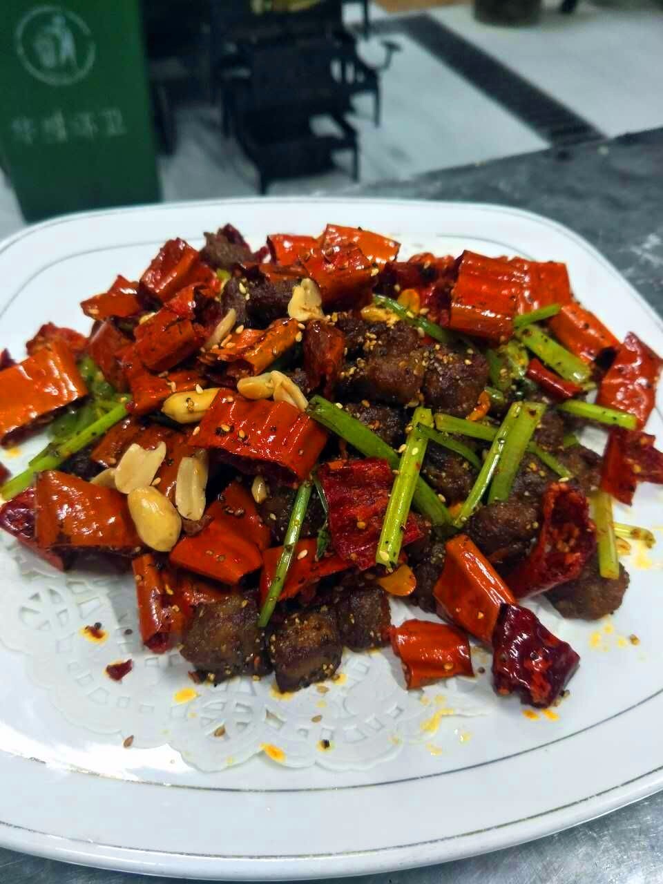 廚師長大力推薦菜奇味小牛肉,大塊牛肉粒,入口香脆的干辣椒,連點(diǎn)綴的花生米與西芹都如此美味,每一口讓你沉醉不能自拔