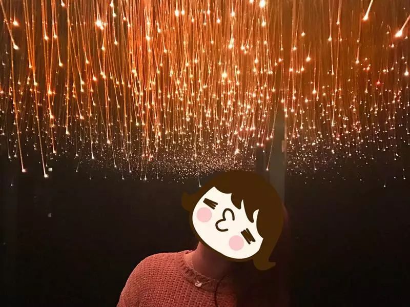 一條漆黑的窄窄的過道,兩側(cè)的黑色背漆玻璃多重反射擴(kuò)大了空間和光效。枝蔓形狀的燈點(diǎn)亮上空,漫天遍野的星光拂過頭頂,人在其中仿佛是走入了星光的夢(mèng)境一般,要克制住自己才不會(huì)叫出來。