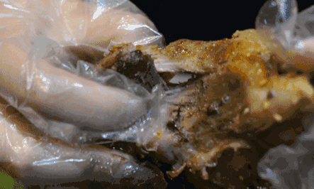 熬制大骨湯剩下的大骨刷上一層烤肉醬,