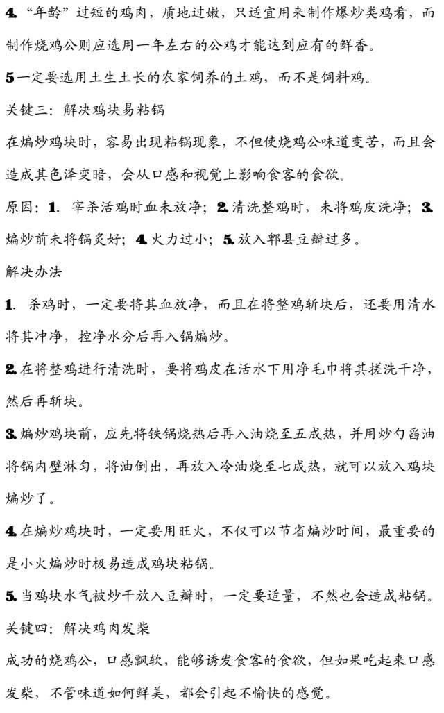 可是,燒雞公這門絕技,說簡單也簡單,說難也難。許多人只能掌握其皮毛,卻不能領(lǐng)悟到真正的精髓,這是因?yàn)閺N界的朋友們一向?qū)u公這門技術(shù)持保守態(tài)度,而一般資料所介紹的方法卻只有其一沒有其二。那么,怎樣才能精通燒雞公呢?