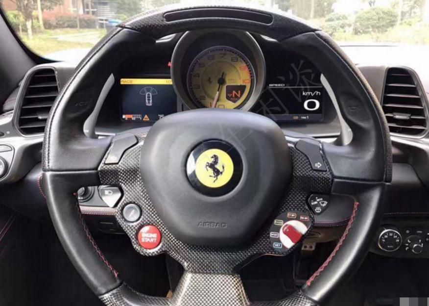 法拉利458的多功能方向盤,一匹騰空而起的駿馬,法拉利超跑超90%的功能是由按鈕控制的,因此更像是駕駛戰(zhàn)斗機。