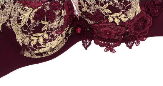 這款LACLOVER玫瑰女王3/4加厚模杯/薄無紡布文胸,從產品的設計上采用了金色的刺繡花邊,搭配紅色水溶刺繡花片,細密緊致的針法以及獨特的花型設計,都能將這款內衣產品的奢華華麗體現(xiàn)的淋漓盡致。此外,整款產品還巧妙的運用豐富的配色使文胸整體的更顯大氣精致,層次也更顯豐富。