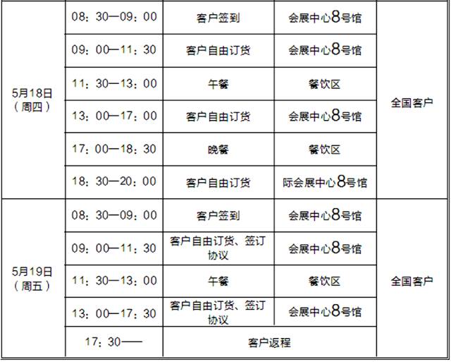 本次訂貨會客戶就餐統(tǒng)一安排在館內(nèi),憑餐券就餐。