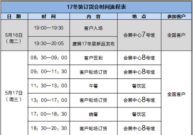 17冬裝訂貨會時間流程表