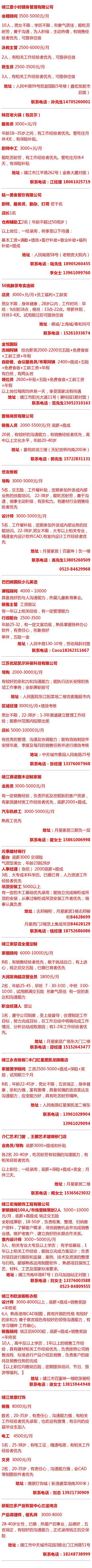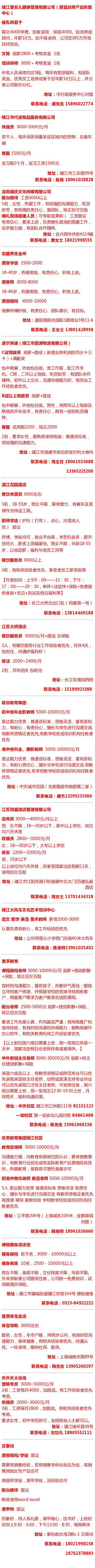 微靖江人才網(wǎng)今日為您推薦五大行業(yè):