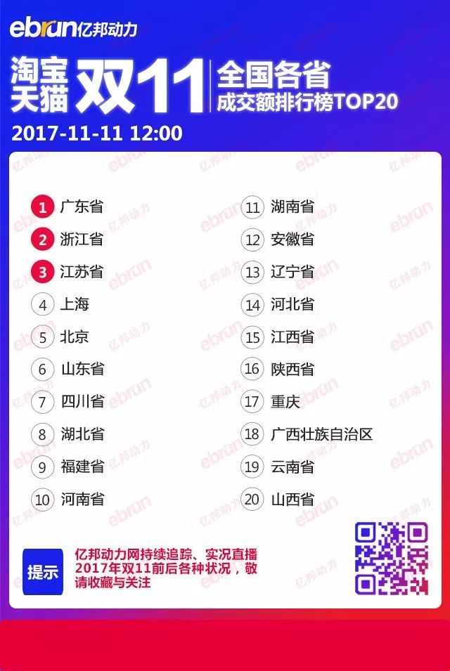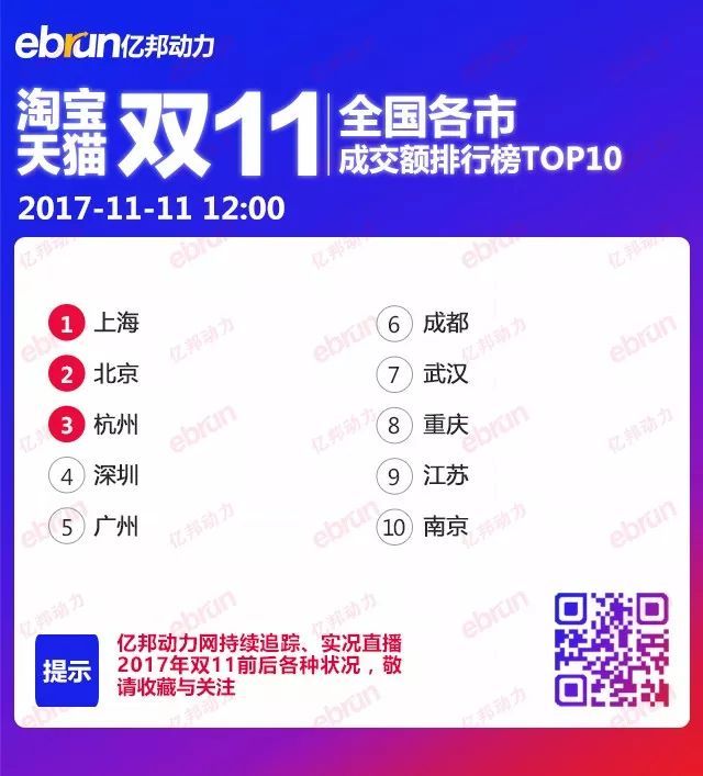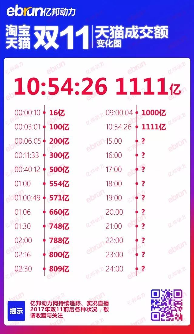 天貓雙11成交額473億!33分鐘 森馬電商業(yè)績4分鐘破億,9分鐘破2億,26分鐘破3億 38分鐘,駱駝品牌全網(wǎng)銷售破2億! 36分小米支付額度突破五億! 34分鐘,TCL雙11總銷售破7億! 33分50秒,伊芙麗品牌破1億! 33分鐘,本來生活破萬單! 30分,男裝品牌排名第一海瀾之家,母嬰品牌排名第一巴拉巴拉,食品品牌排名第一三只松鼠 30分鐘,青島聚品電商全網(wǎng)交易額突破1.25億。 30分鐘,美的熱水器凈飲水全網(wǎng)銷售額破1.78億! 28分鐘,網(wǎng)易考拉銷售額達(dá)成去年雙11全天銷售額 18分鐘,全棉時代破億! 16分45秒,伊芙麗集團(tuán)破1億! 15分鐘,百麗電商破億!去年用時37分鐘 15分鐘,新七天全網(wǎng)銷售額突破1億元。 百雀羚15分鐘不到已破億! 14分鐘,太平鳥全品牌破3億! 13分鐘,好想你破500萬! 12分鐘52秒,三只松鼠銷售破1億! 海爾天貓大家電10分鐘破2億 可優(yōu)比旗艦店15分鐘破去年全天銷售額! 百秀大藥房12分鐘破2000萬! 11分鐘13秒,破300億! 10分37秒,韓都衣舍集團(tuán)交易額破1億!去年用時15分50秒 10分鐘,小冰火人銷售額破4000萬! 8分鐘,夏普官方旗艦店破億! 6分鐘,駱駝品牌破億! 6分鐘,若琪·月石智能音箱銷售額破破百萬! 海信58秒破億! 優(yōu)衣庫1分鐘內(nèi)破億!