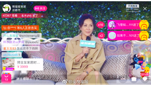 如果只是以明星的號召力,獲取品牌的強(qiáng)曝光和網(wǎng)友的互動,那么全友家居此次雙十一直播的營銷核心目的顯然沒有達(dá)到,也不能稱之為明星營銷教程了。從全友家居此次選定的三位直播女神來看,既代表著不同年齡階段的女性受眾,又同是事業(yè)有成,愛情大豐收。直播活動現(xiàn)場圍繞愛情保鮮,綠色生活的居家話題,八卦、有趣的互動問答引明星和在線網(wǎng)友強(qiáng)勢互動。通過趣味十足的八卦問答與居家生活探討,全友家居可謂將明星效應(yīng)、情感共鳴與產(chǎn)品場景化結(jié)合,完美的融合為了一體。