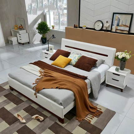全友家私雙人床1.8米1.5米床北歐臥室成人家具高箱床白色121802