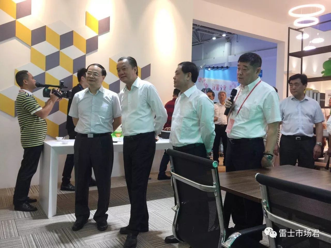 看惠州、福建的市領導們親臨雷士展位現(xiàn)場,聽雷士工作人員對展位及雷士品牌、產品、發(fā)展狀況進行介紹。