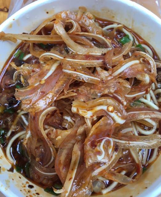 重慶這么多小面,做姜鴨面的他們算是最出頭的一家,很地道的川味,辣味足。面條很贊很有勁道,像手工面,比水面粗,比粗面又細(xì)。
