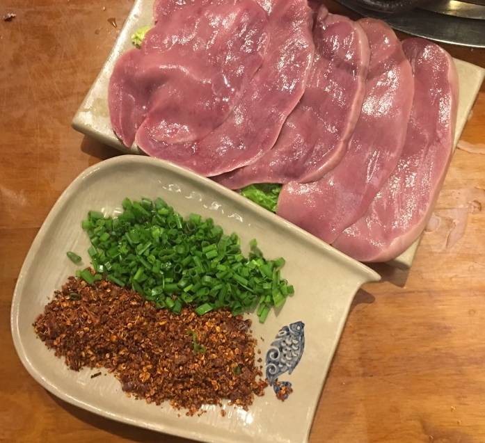 店面不大,里面只能放下四張桌子,由此取名四桌火鍋,他家的菜單比一般的火鍋館整得精致,名字都取得很文藝,腰片很特色,超厚超大一片,有女人巴掌這么大一塊,蔥花搭配辣椒面看上去超有食欲。