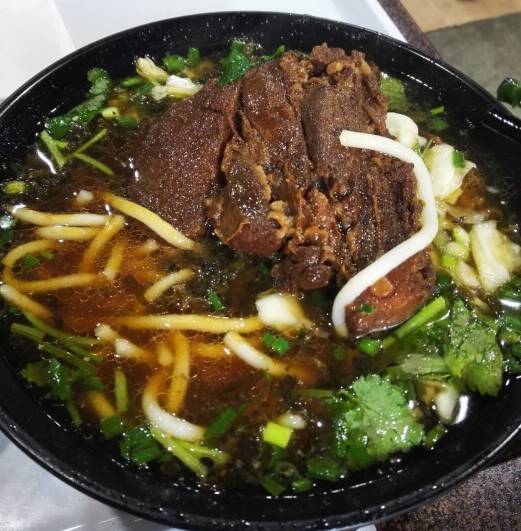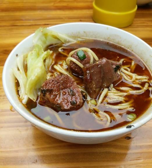 面是定制的,菜一年四季都是圓白菜,吃姐覺得是牛肉面的最佳搭檔菜沒有之一。牛肉燉的很爛很入味,而且分量十足,28元的面有四塊厚厚的牛肉。