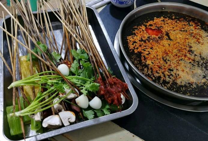 只賣葷菜,不賣素菜,簽簽牛肉果然是招牌,火候適中,肉質(zhì)鮮嫩,一顆顆大海椒吃進(jìn)嘴里,不怎么辣,但是香,還可以嚼。