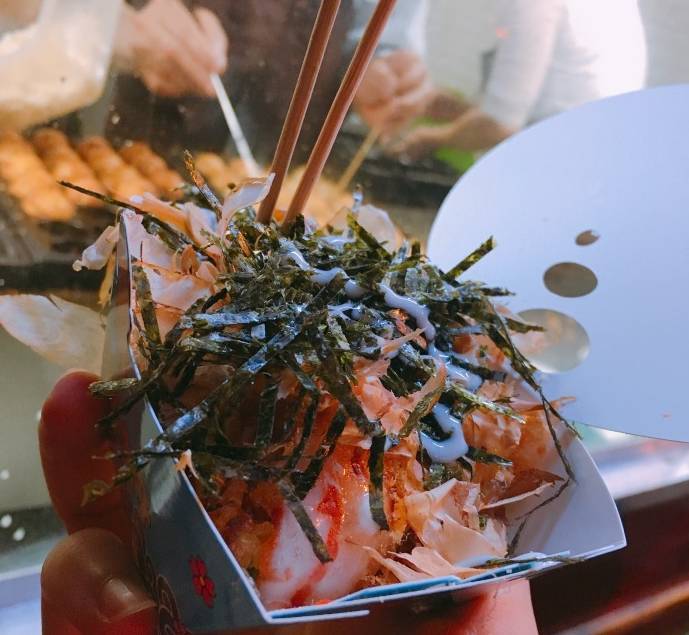 這個(gè)章魚小丸子,從郵局門口的小攤,現(xiàn)在做成了門店。這個(gè)本來是兩口子做,結(jié)果兒子也加入了,都搞成那種比較專業(yè)的了。料足到?jīng)]天理,每個(gè)丸子外面脆脆里面軟軟,包裹了雞蛋和面粉的香甜,加上柴魚片和海苔絲,好吃!