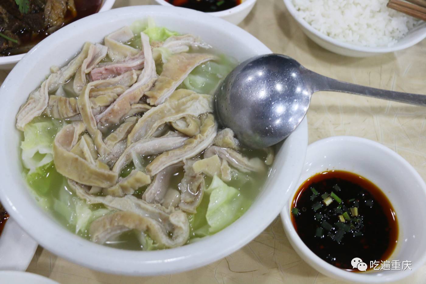“你還記得二十幾年前,解放碑深巷子閣樓里,那碗鮮肚子雞湯銀絲面不?”21元一碗說真的感覺不便宜,但只要喝上一口湯,頓時(shí)覺得值了。味道很直接很家常。