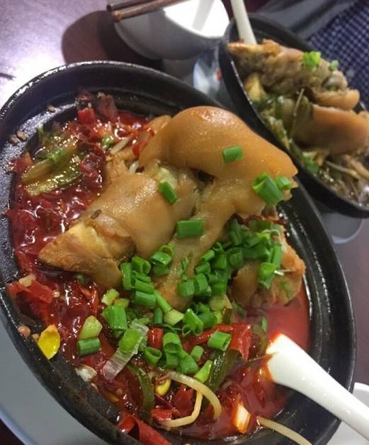 這家店位置不太好找,不是資深吃貨絕對(duì)找不到。一只雞做成幾種口味,白砍雞麻辣鮮香,刀工好,切得很薄,所以很入味。想吃要提前電話預(yù)定。