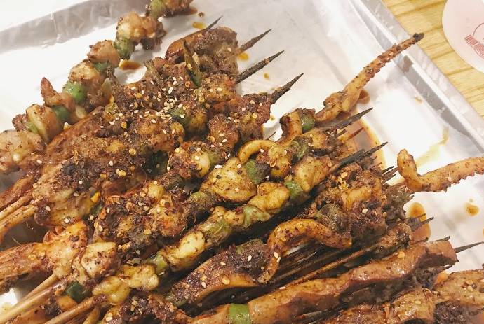他家分店也很多,但是對(duì)分店的評(píng)價(jià)褒貶不一。燒烤種類很多,招牌腦花必點(diǎn),里面的辣椒和泡菜很香,把腦花的腥味完全蓋住了,佐料味太香啦,一人一個(gè)完全沒壓力。