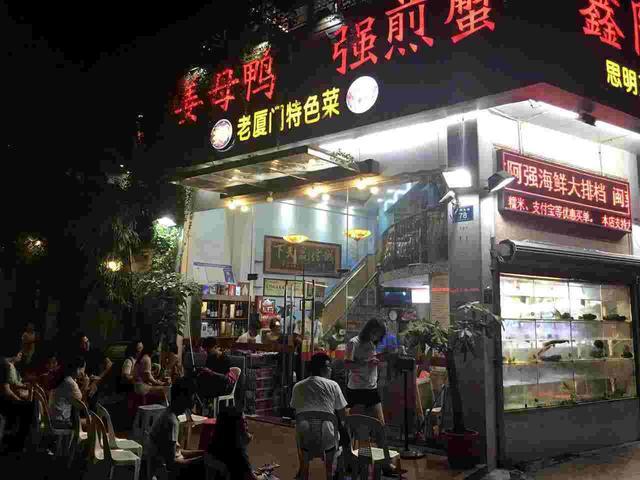 姜母鴨強(qiáng)煎蟹,咋一聽這名字就會(huì)想笑,超霸氣!真得佩服店家,敢取這樣的名字!進(jìn)店后跟老板閑聊才發(fā)現(xiàn)這名字的緣由,一家主打姜母鴨和煎蟹的閩南特色餐廳,因?yàn)槔习褰邪?qiáng),所以你應(yīng)該明白了。姜母鴨強(qiáng)煎蟹位于思明東路,思明電影院附近,也算老廈門具有代表性的一條街。走進(jìn)這條街,仍然能感受到老廈門的古早氣息。就是這樣一家小店,如果說(shuō)在中山路旅游區(qū),也算是非常偏的位置,卻能做到經(jīng)常爆滿排隊(duì),明星田亮、曾志偉也曾光顧過(guò)!說(shuō)是中山路姜母鴨網(wǎng)紅店,一點(diǎn)也不過(guò)分!