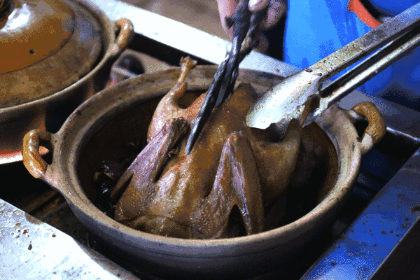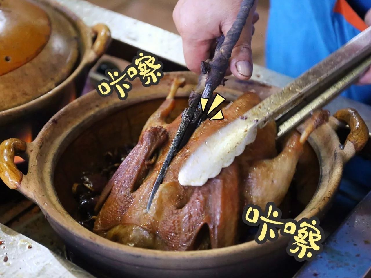 “要一只姜母鴨!边@句話一來,熟練的店員那就揭開個鍋蓋,給您拾掇鴨子了。