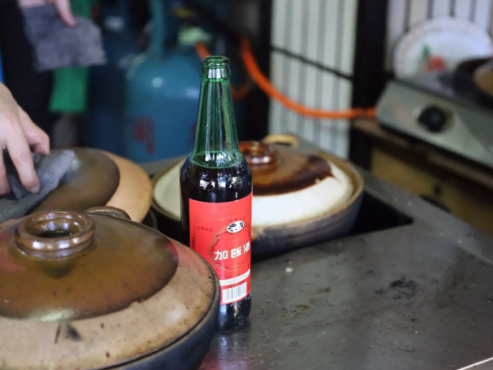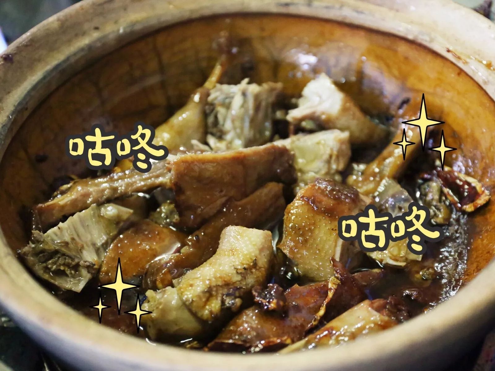 這鴨子剪好,小砂鍋里也早已撲騰撲騰的熱鬧了,再淋上加飯酒,吱啦~鍋里渾厚的香氣立刻沖出鍋來,撲得你滿臉香。