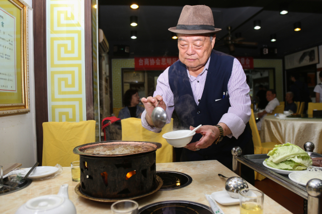 約定時間是傍晚五點,陳村金已早早坐在餐廳前的位子上等候“鄉(xiāng)味”小隊的到訪。他笑吟吟地說今天立冬,客人一定會很多,因為今天要吃姜母鴨。