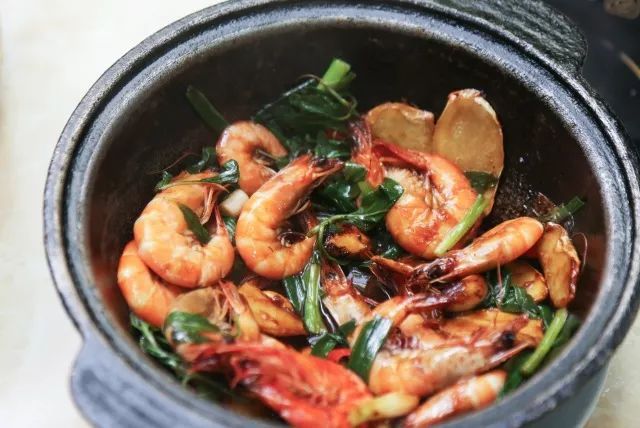 除了招牌姜母鴨,陳村金還不定時推出各種各樣的臺灣菜,菜色應時節(jié)而定。我們今天嘗到的是三杯蝦,純正的臺灣味道,讓眾人贊不絕口。