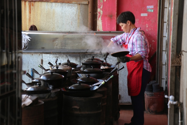 老人家時不時搖一搖蒲扇加點薪火,一小時過去,伴隨著鍋蓋縫里飄出的香味,姜母鴨已經(jīng)燜熟了。