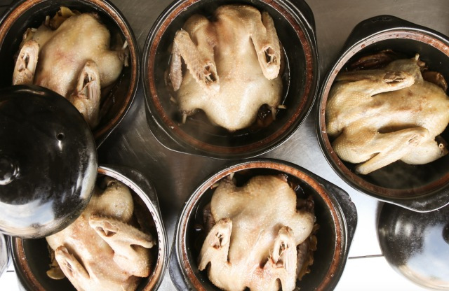 鴨子經(jīng)過高溫燜制后流出湯汁與鴨油