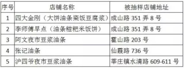 來自成山路351弄8號的四大金剛門店,其油條鋁含量980mg/kg!是標(biāo)準(zhǔn)值100毫克每千克的9倍還要多!