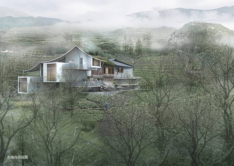 云霧繚繞是這片山區(qū)最平常的風(fēng)景,也是這次改造的核心意向。因此,整體結(jié)構(gòu)中最重要、最優(yōu)美的就是一片造型飄逸的云頂。