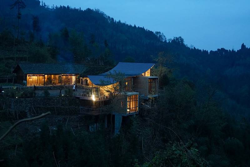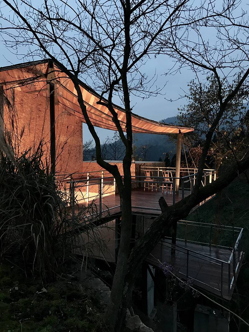 設(shè)計團(tuán)隊(duì)在民宿設(shè)計中利用不同標(biāo)高的人工挖孔樁,承托起不同層次的平臺,從而在平臺上增加民宿的客房等附屬建筑。