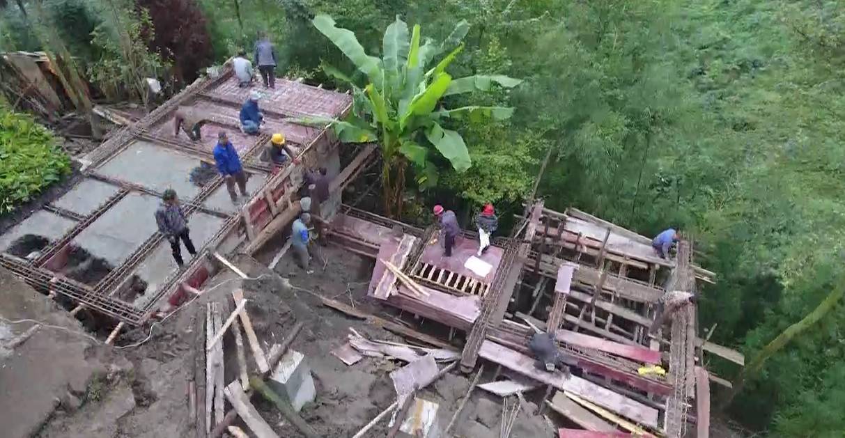 “老楊家”是傳統(tǒng)的川式民居,原本是一個完整的圍合院落,當(dāng)年地震導(dǎo)致了一側(cè)房屋的坍塌,于是形成了現(xiàn)在的L型結(jié)構(gòu)。