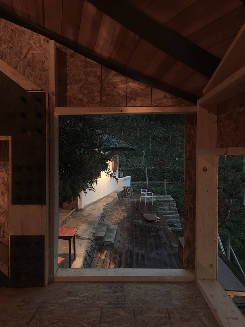 這次民宿的改造采取了非常特殊的策略,通過幾個小顆粒的盒子單元的嵌入,來完成建筑的實(shí)用功能。