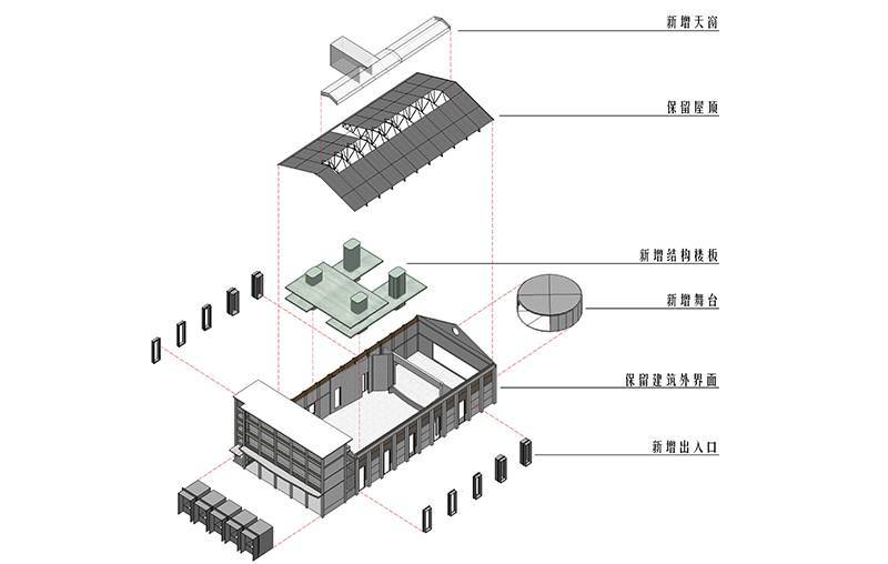 所謂比對與重構(gòu),是當(dāng)人們進(jìn)入到影劇院能夠感受到它曾經(jīng)的輝煌,帶來記憶和情感的共鳴。因此,新植入的元素盡量和原有的體量、結(jié)構(gòu)上保持距離,維持老體系的完整性。