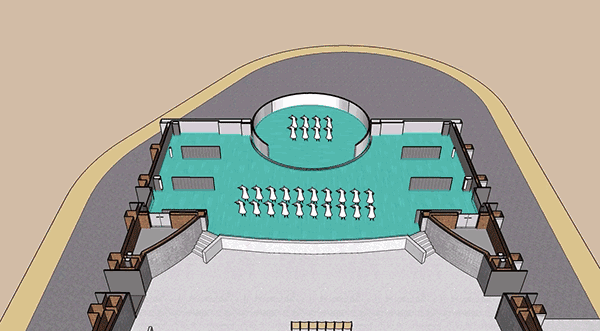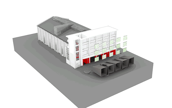 舞臺從最初的單向表演舞臺變成了一個使用更加靈活的場所,既可做舞臺,也能做小劇場表演的觀看場地。當(dāng)舞臺向外打開時,還能服務(wù)社區(qū)廣場的人們。