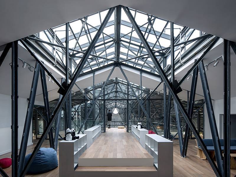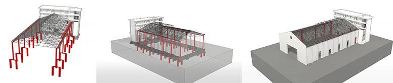 考慮到震后及老建筑的安全問題,設(shè)計師團(tuán)隊(duì)利用大型鋼柱完成整體結(jié)構(gòu)的“偷梁換柱”。